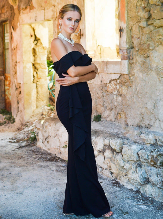 ΕΚΠΤΩΣΗEξωμο φόρεμα με βολάν ΜΑΥΡΟ