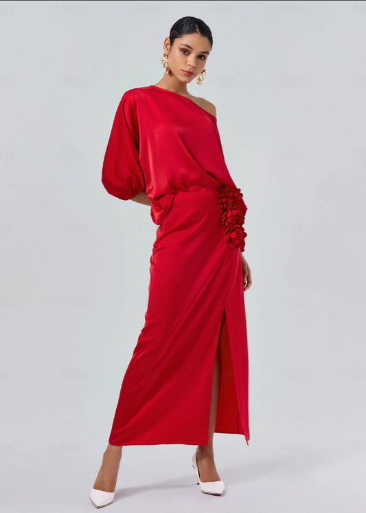 ΕΚΠΤΩΣΗΣατέν Σετ Top & Φούστα ΚΟΚΚΙΝΟ
