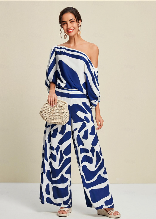 ΕΚΠΤΩΣΗΣατέν Σετ Top & Παντελόνι ΜΠΛΕ