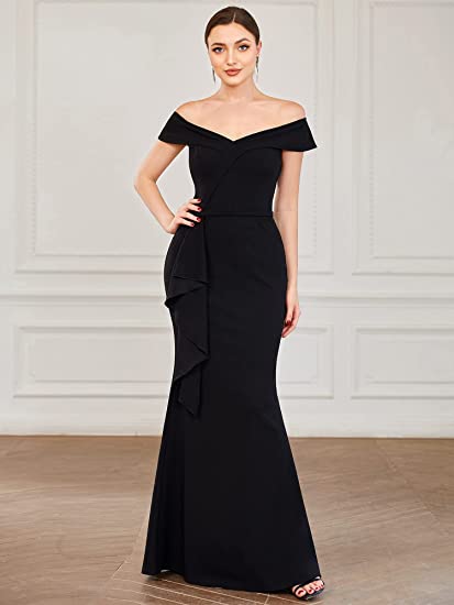 Εξωμο εφαρμοστό μάξι φόρεμα με βολάν. Χωρίς επένδυση και φόδρα.