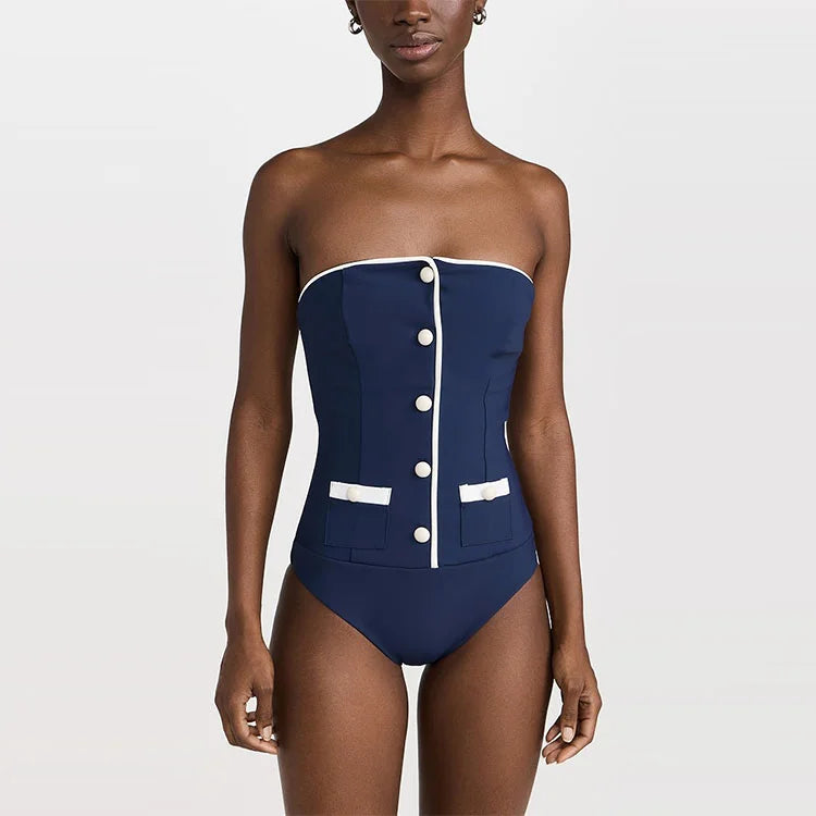 Ολόσωμο μαγιό με κοντό σορτς. Εφέ σύσφιξης στη μέση. Θήκες με ενίσχυση και αφαιρούμενα μαξιλαράκια που σμιλεύουν το στήθος και προσφέρουν καλή στήριξη, και μέτρια κάλυψη στους γλουτούς.