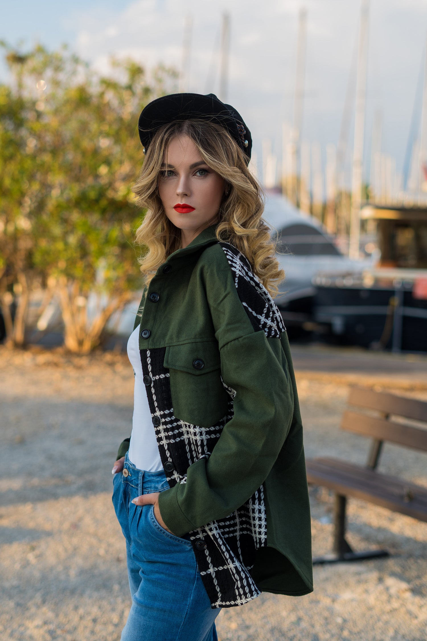 Πουκάμισο με γιακά, κουμπιά μπροστά και μακρύ μανίκι. Εξωτερικές τσέπες στο στήθος.
